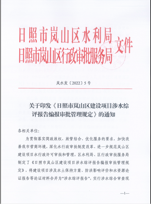 二是推行“三合一”涉水綜評(píng)報(bào)告。為優(yōu)化營商環(huán)境,嵐山區(qū)水利局會(huì)同嵐山區(qū)審批局聯(lián)合印發(fā)《日照市嵐山區(qū)建設(shè)項(xiàng)目水影響評(píng)價(jià)編制指南(試行)》和《日照市嵐山區(qū)建設(shè)項(xiàng)目水影響評(píng)價(jià)報(bào)告編報(bào)審批管理規(guī)定》,在全市創(chuàng)新性的將涉水相關(guān)的水土保持、水資源論證、防洪影響評(píng)價(jià)“三合一”改革成“涉水綜評(píng)報(bào)告”,實(shí)行“三合一”審批后,將原有的三個(gè)評(píng)審環(huán)節(jié)合并為一個(gè)評(píng)審環(huán)節(jié),一個(gè)項(xiàng)目在涉水審批上不再多次評(píng)審,將節(jié)省三分之二審批時(shí)間,既為企業(yè)減少時(shí)間成本,又為企業(yè)減少制度成本,從根本上達(dá)到為企業(yè)減負(fù)的效果。